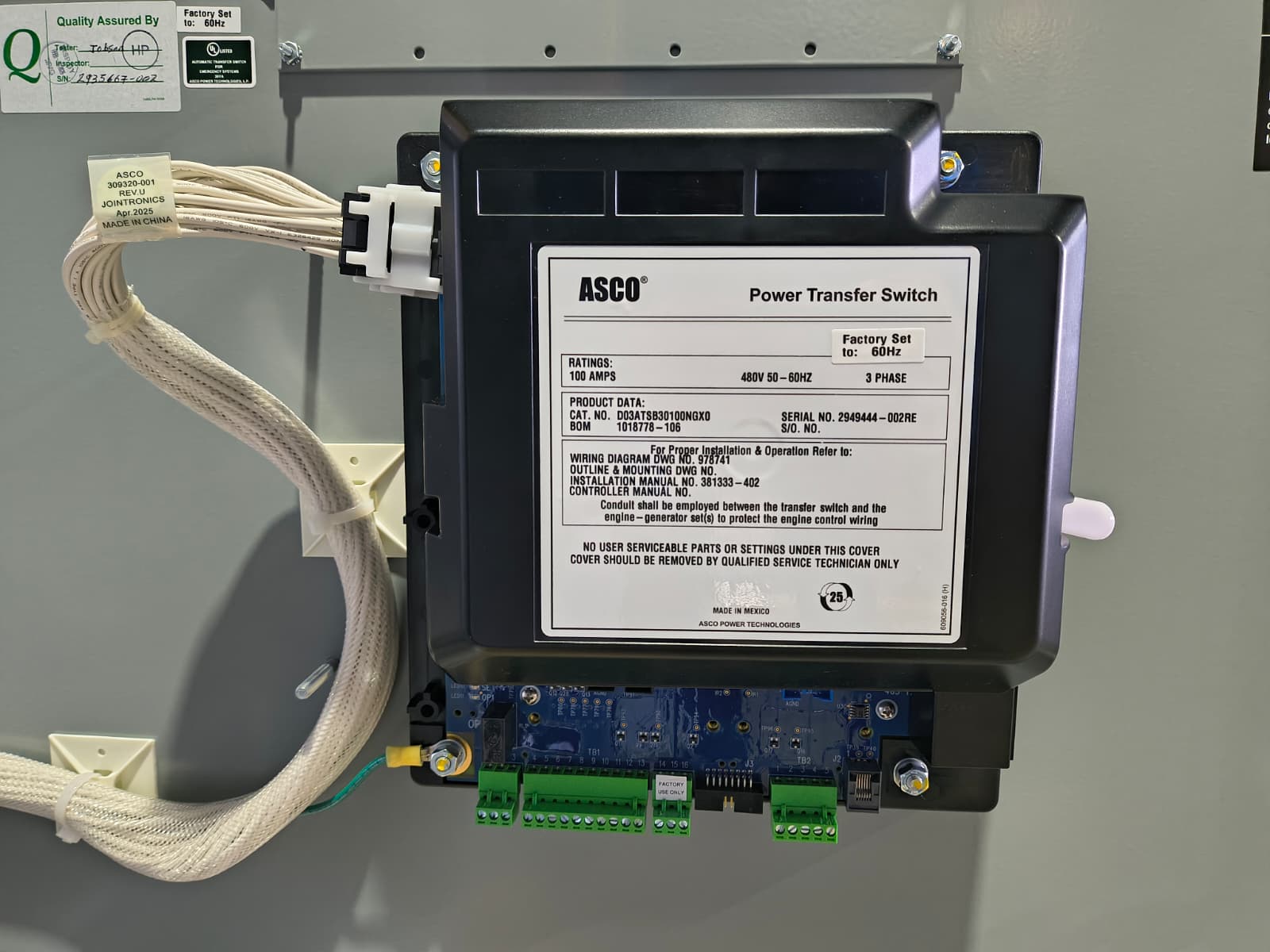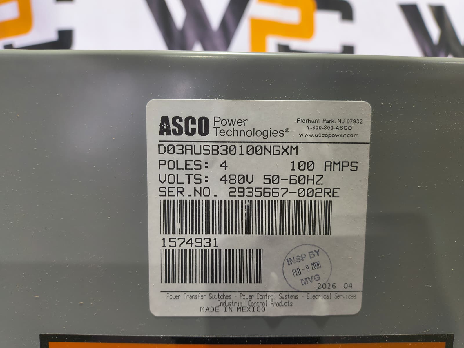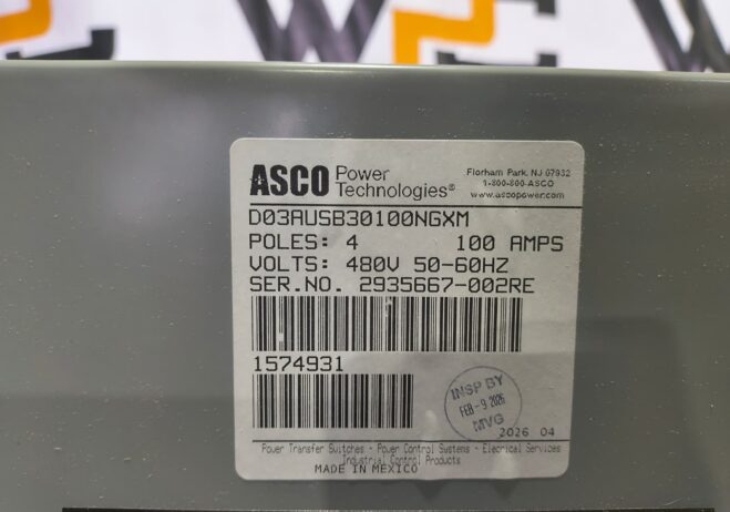 New 100 Amp ASCO Series 300 D03AUSB30100NGXM Service Entrance Rated Automatic Transfer Switch