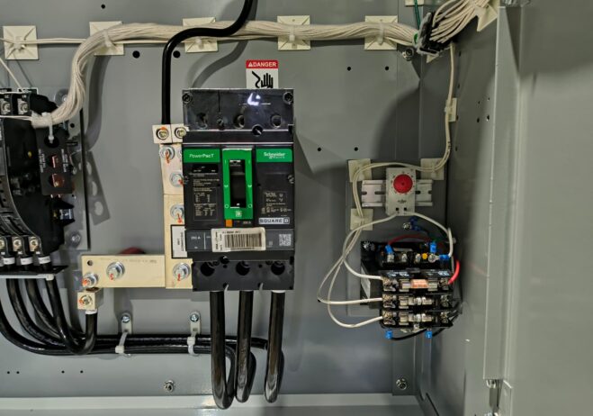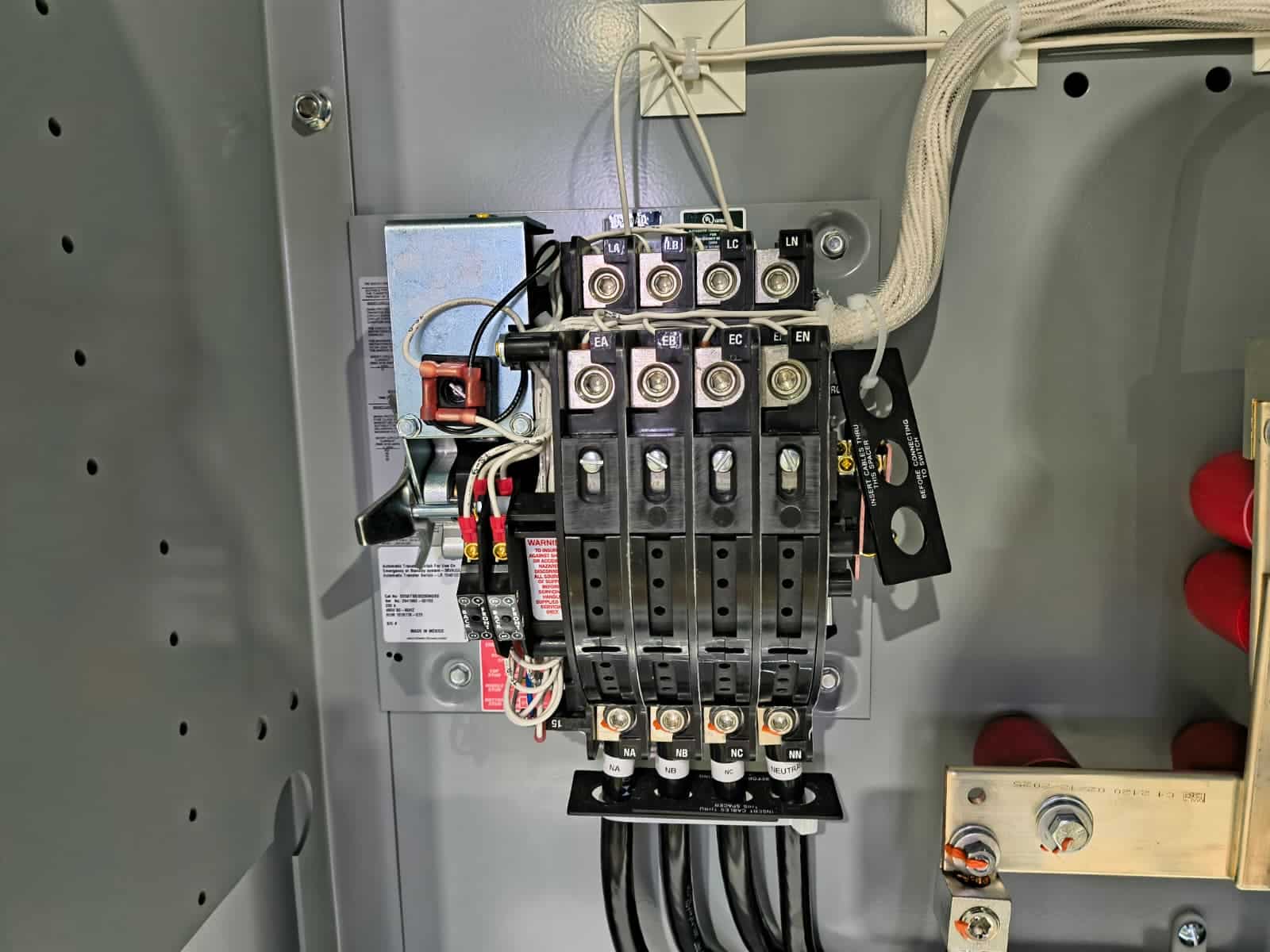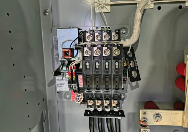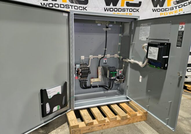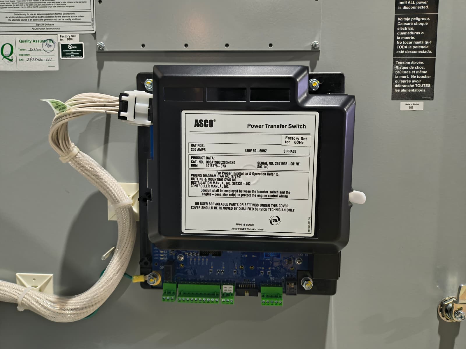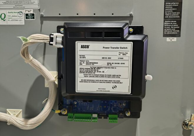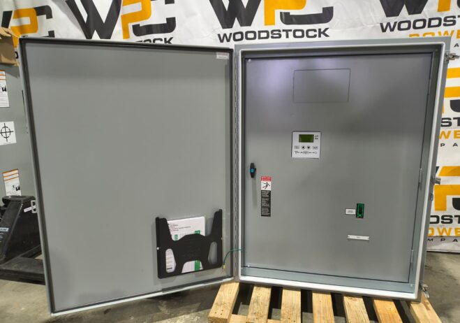 New 200 Amp ASCO Series 300 D03AUSB30200NGXM Automatic Transfer Switch 200 amp automatic transfer switch Service Entrance Rated NEMA 3R 480V 4-Pole 3-Phase 4-Wire Switched [B] neutral configuration Optional accessories: 11BE – Adds the following features to the Group G controller: (1) Serial RS-485 Modbus Communications (2) Multi-Schedule Engine Exerciser (3) a 300 Entry Event Log and (4) a common alarm output function. When applied on 3-Phase systems it also enables: (1) 3-Phase Emergency Source VLL sensing (2) Phase Rotation Monitoring (3) Emergency Source VLL Unbalance Monitoring 44G – Strip heater w/ thermostat, wired to load terminals: 208-600 volts Designed for wall-mounted ATS installation |