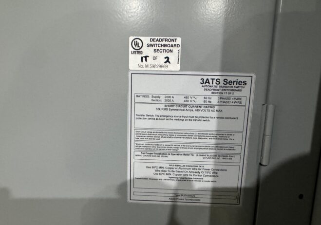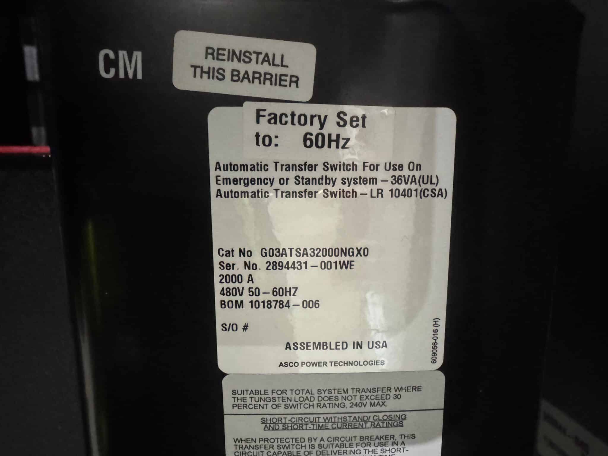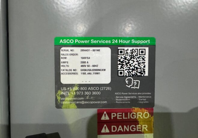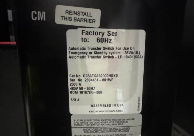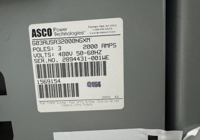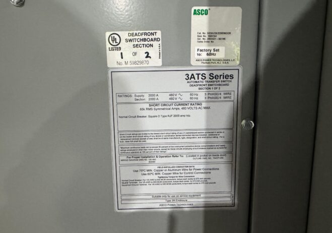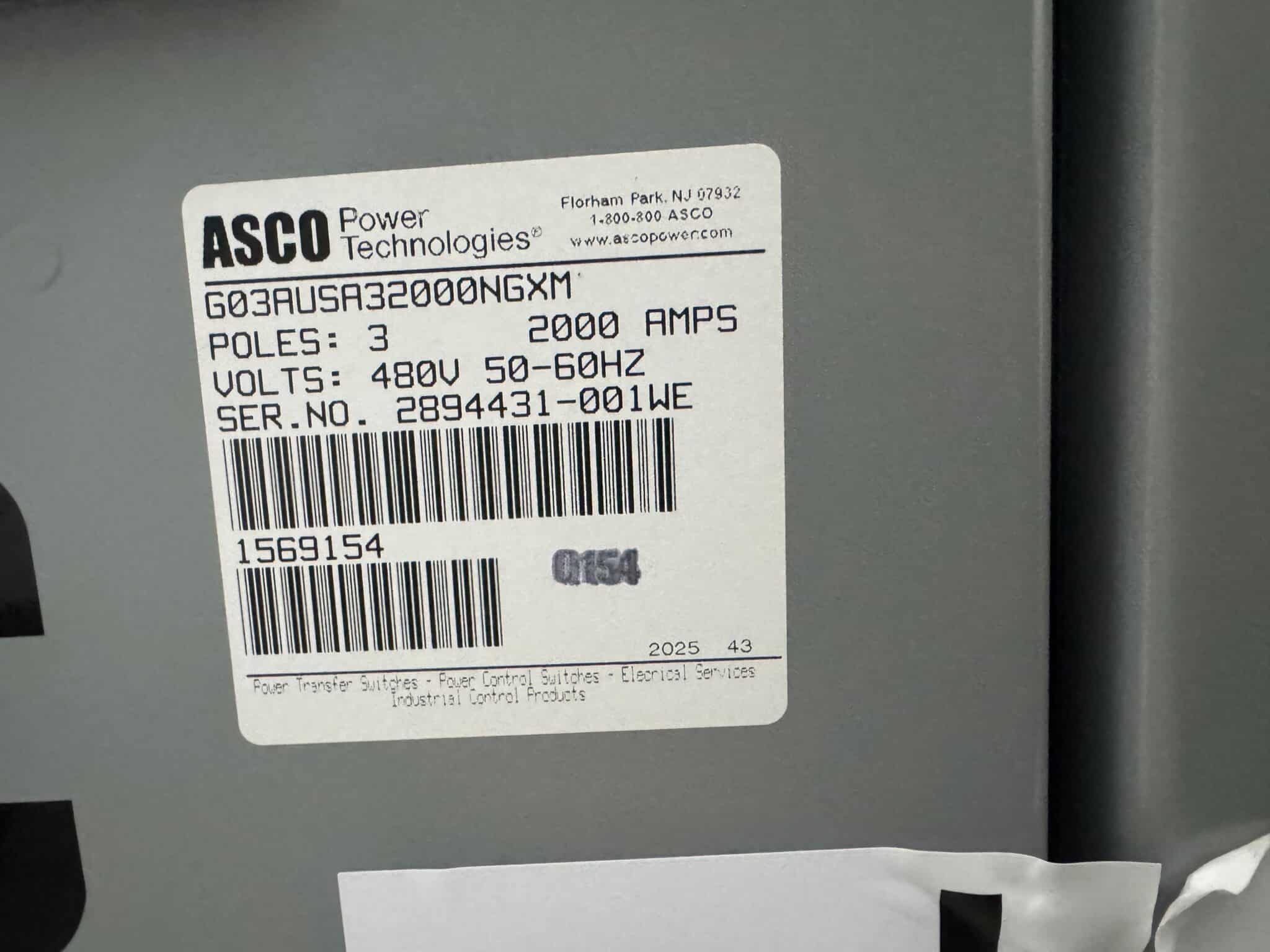 New 2000 Amp ASCO Series 300 G03AUSA32000NGXM Service Entrance Rated Automatic Transfer Switch 2000 amp automatic transfer switch Service Entrance Rated 480V NEMA 3R 3-Pole 3-Phase 4-Wire Solid [A] neutral configuration 2000A Square D RJF breaker |