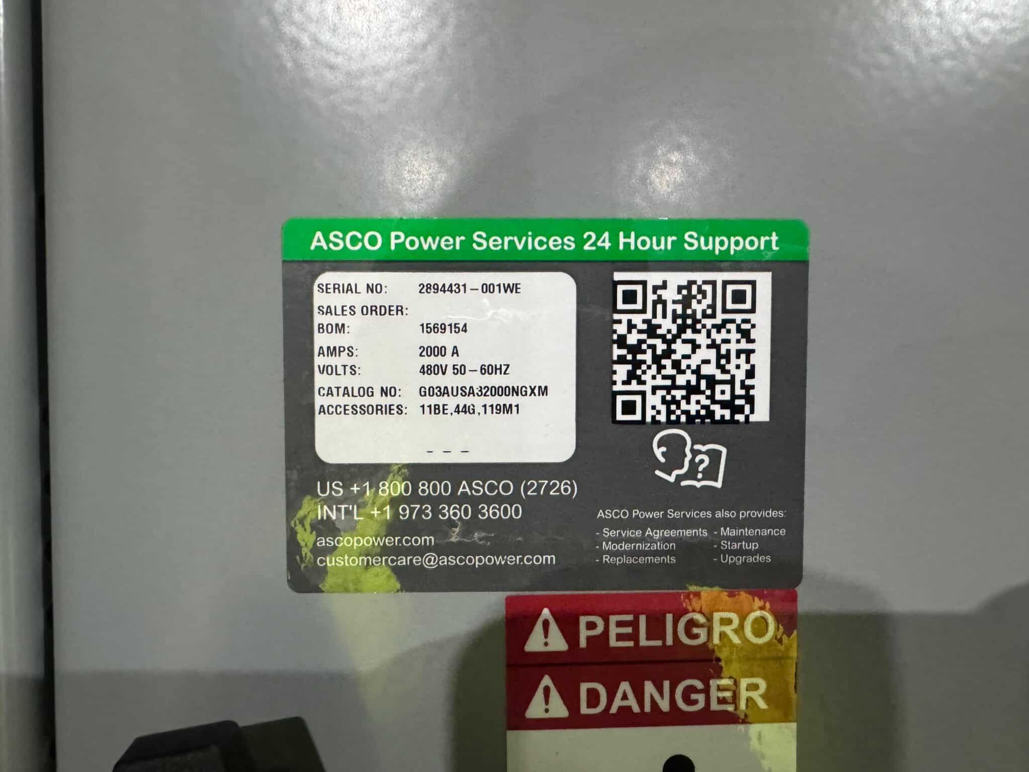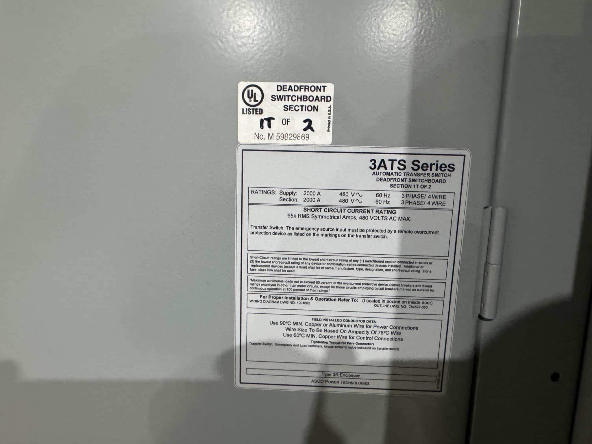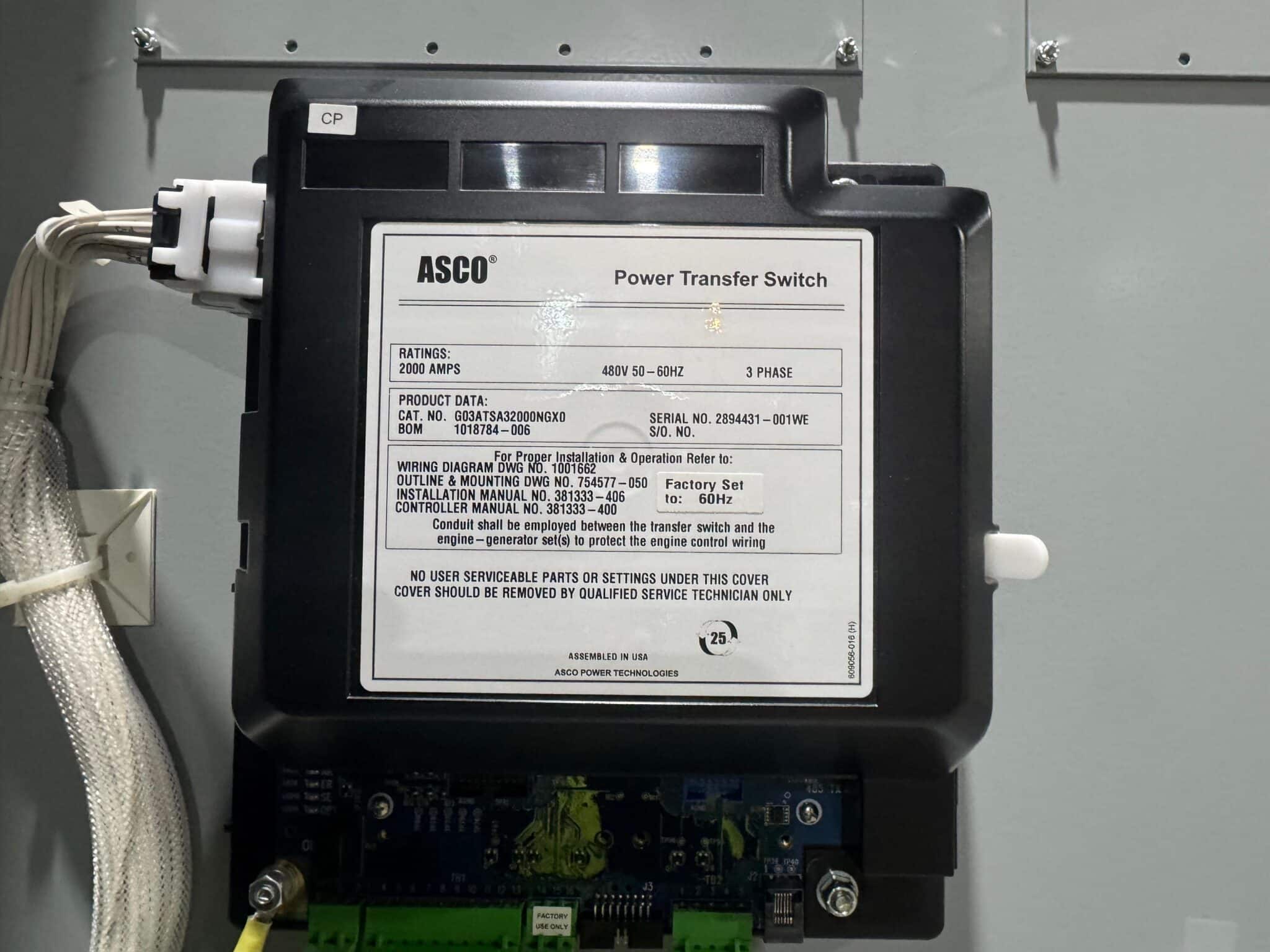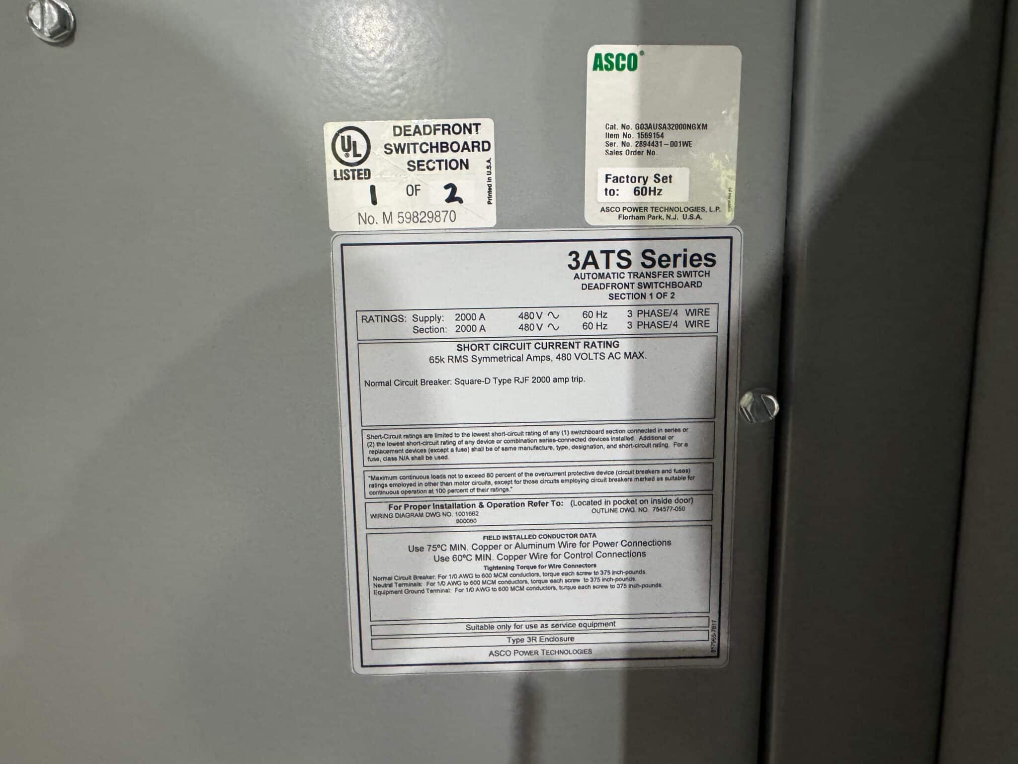 New 2000 Amp ASCO Series 300 G03AUSA32000NGXM Service Entrance Rated Automatic Transfer Switch 2000 amp automatic transfer switch Service Entrance Rated 480V NEMA 3R 3-Pole 3-Phase 4-Wire Solid [A] neutral configuration 2000A Square D RJF breaker |