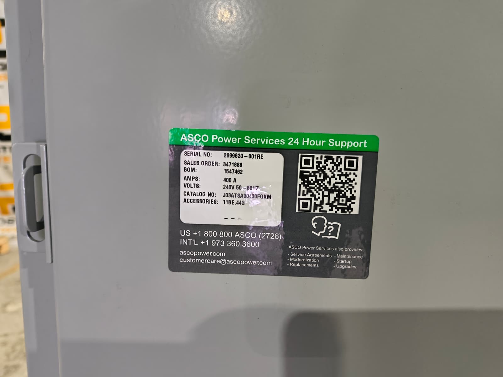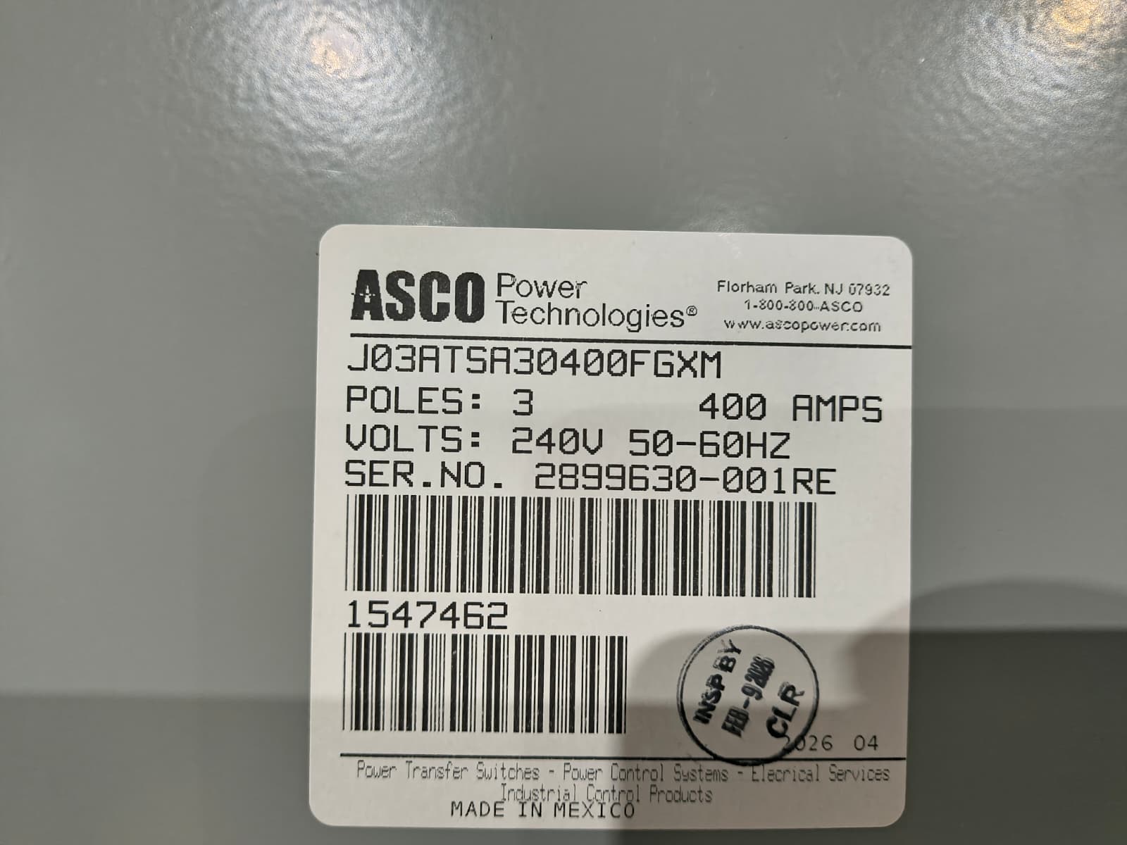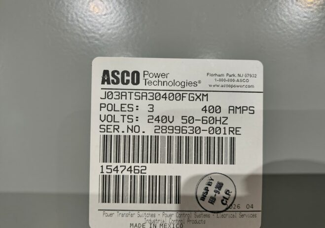 New 400 Amp ASCO J03ATSA30400FGXM Automatic Transfer Switch
