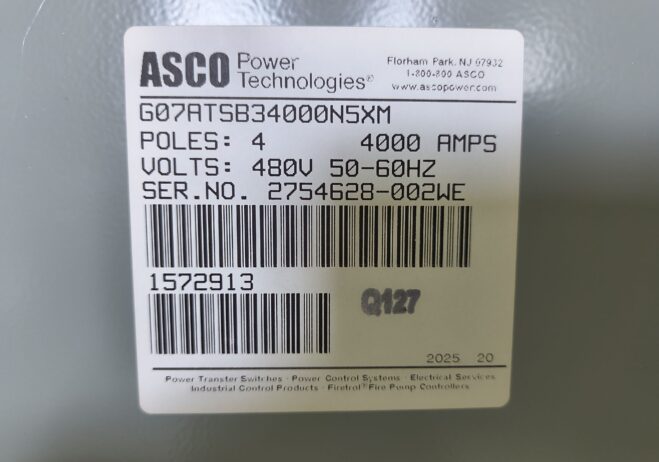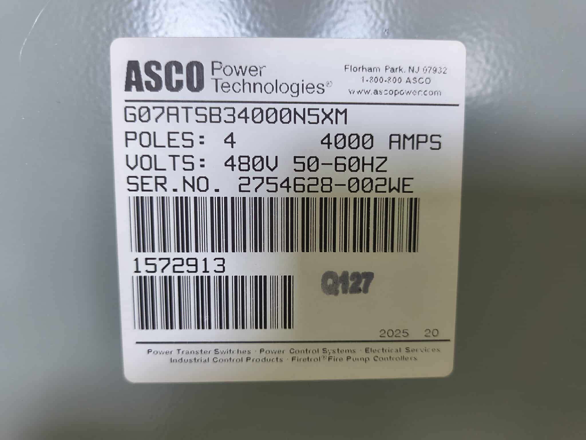 New 4000 Amp ASCO 7000 Series G07ATSB34000N5XM Automatic Transfer Switch