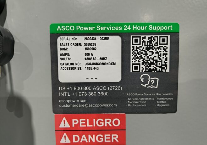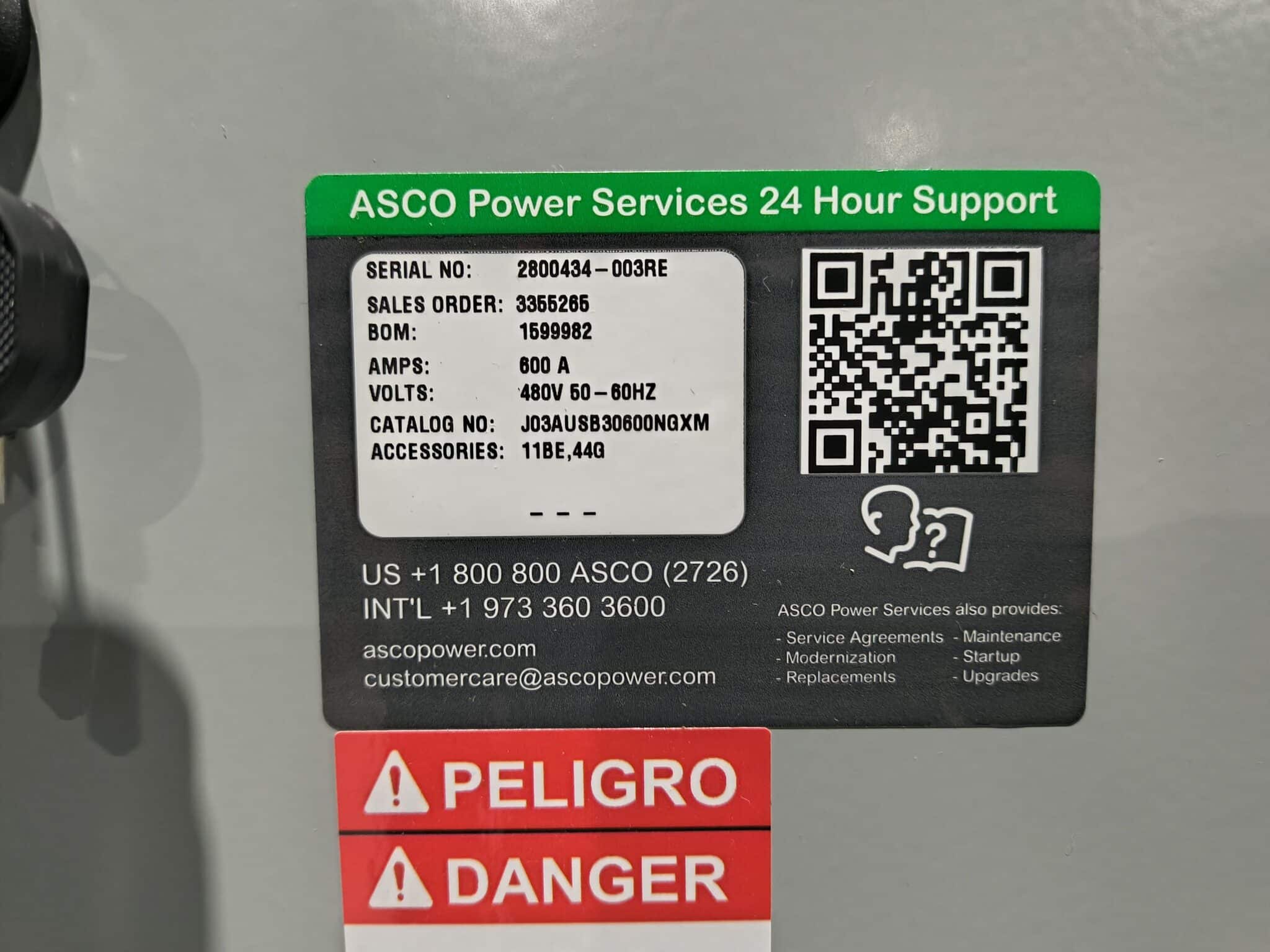 New 600 Amp ASCO J03AUSB30600NGXM Service Entrance Rated Automatic Transfer Switch