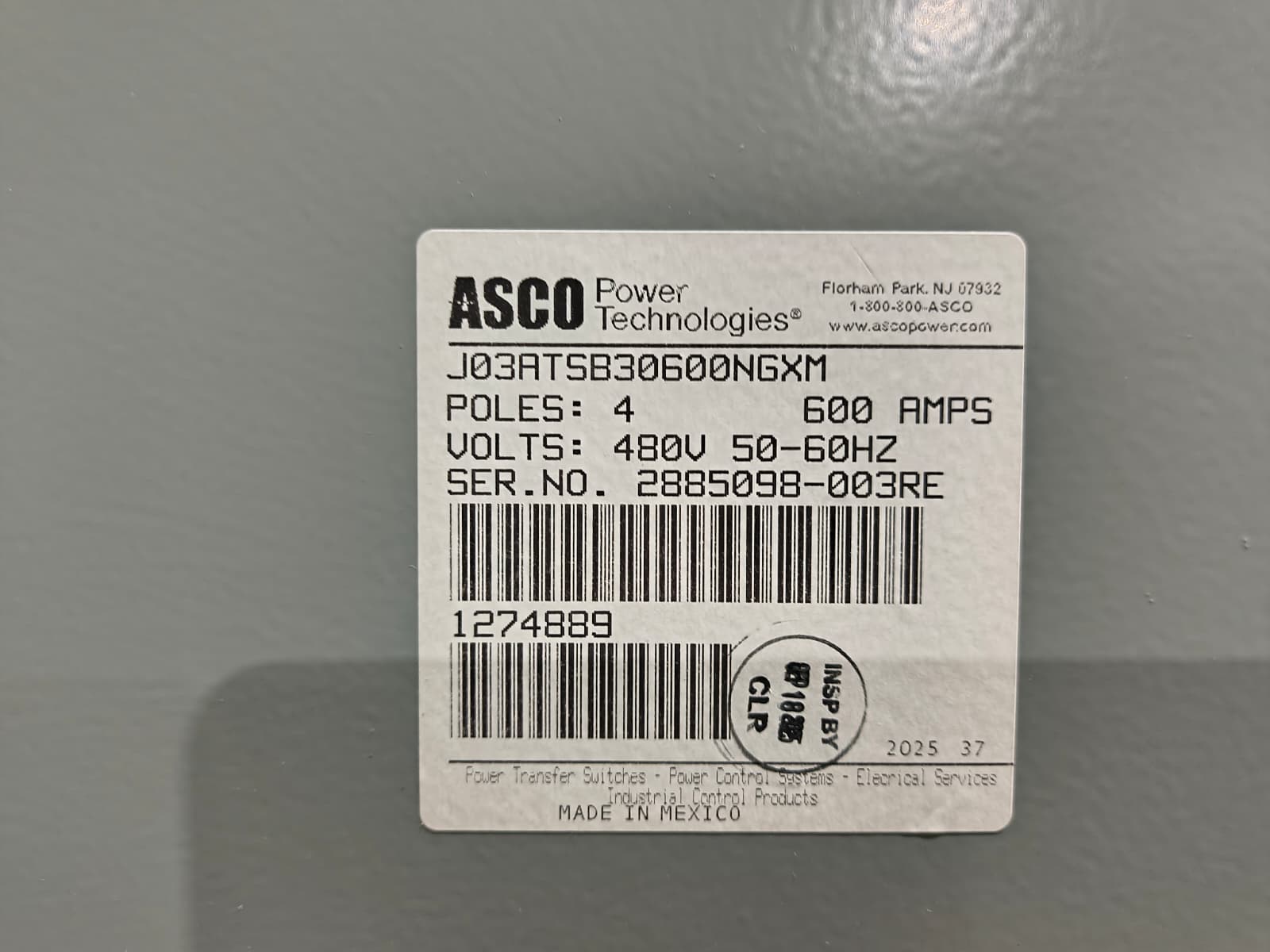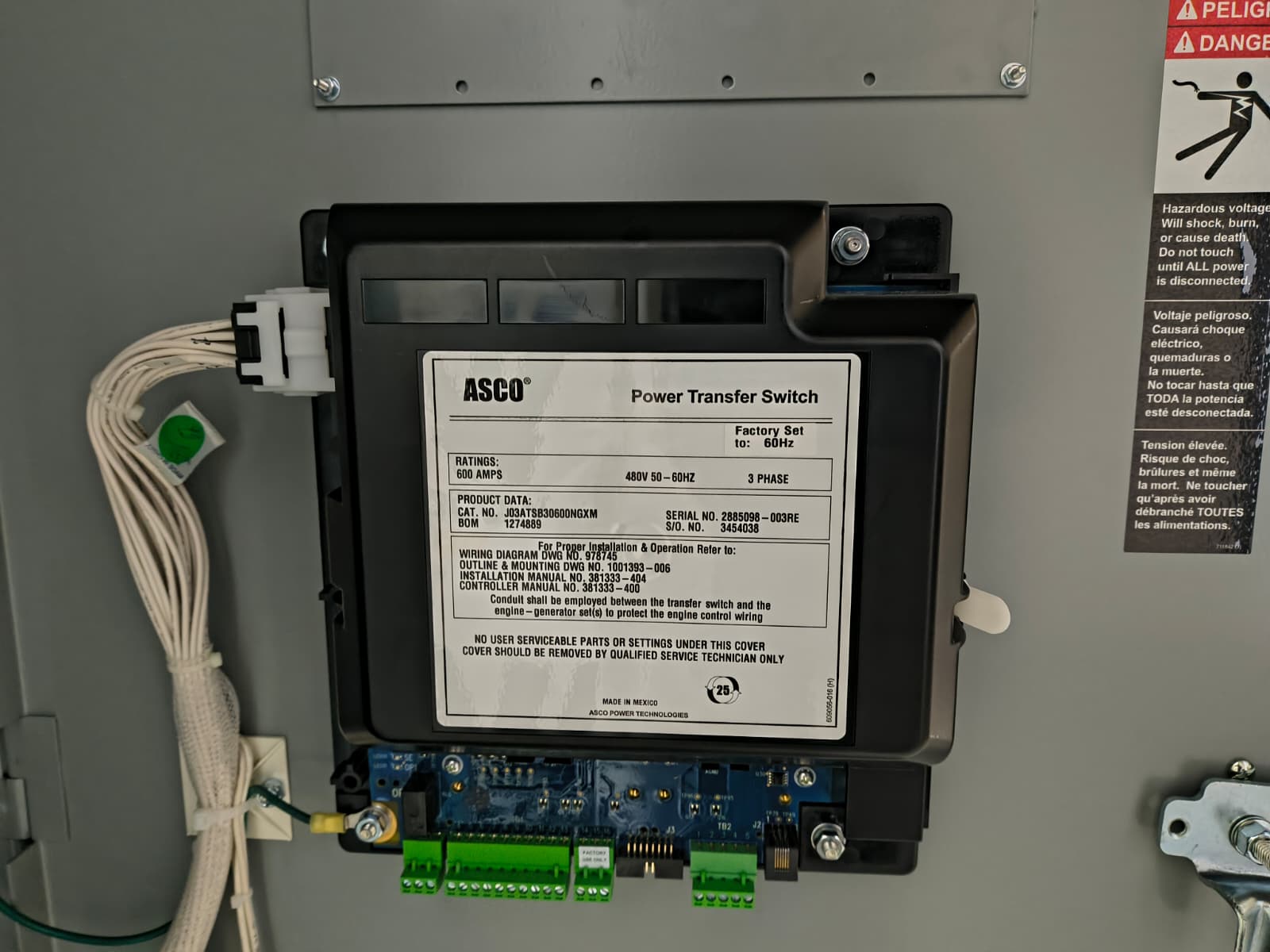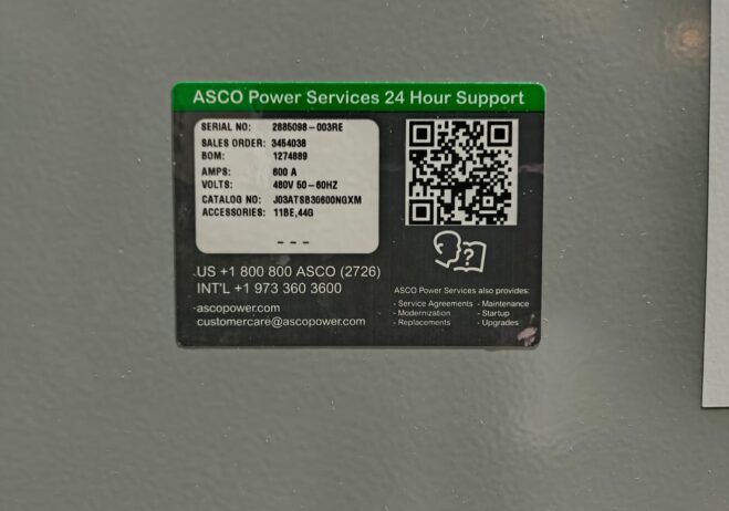 New 600 Amp ASCO Series 300 J03ATSB30600NGXM Automatic Transfer Switch
