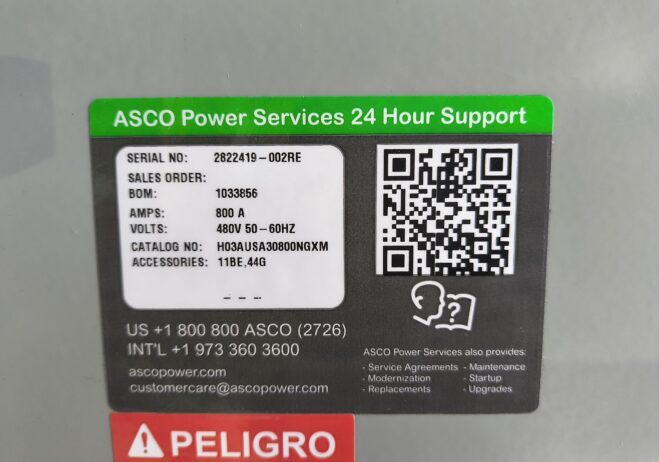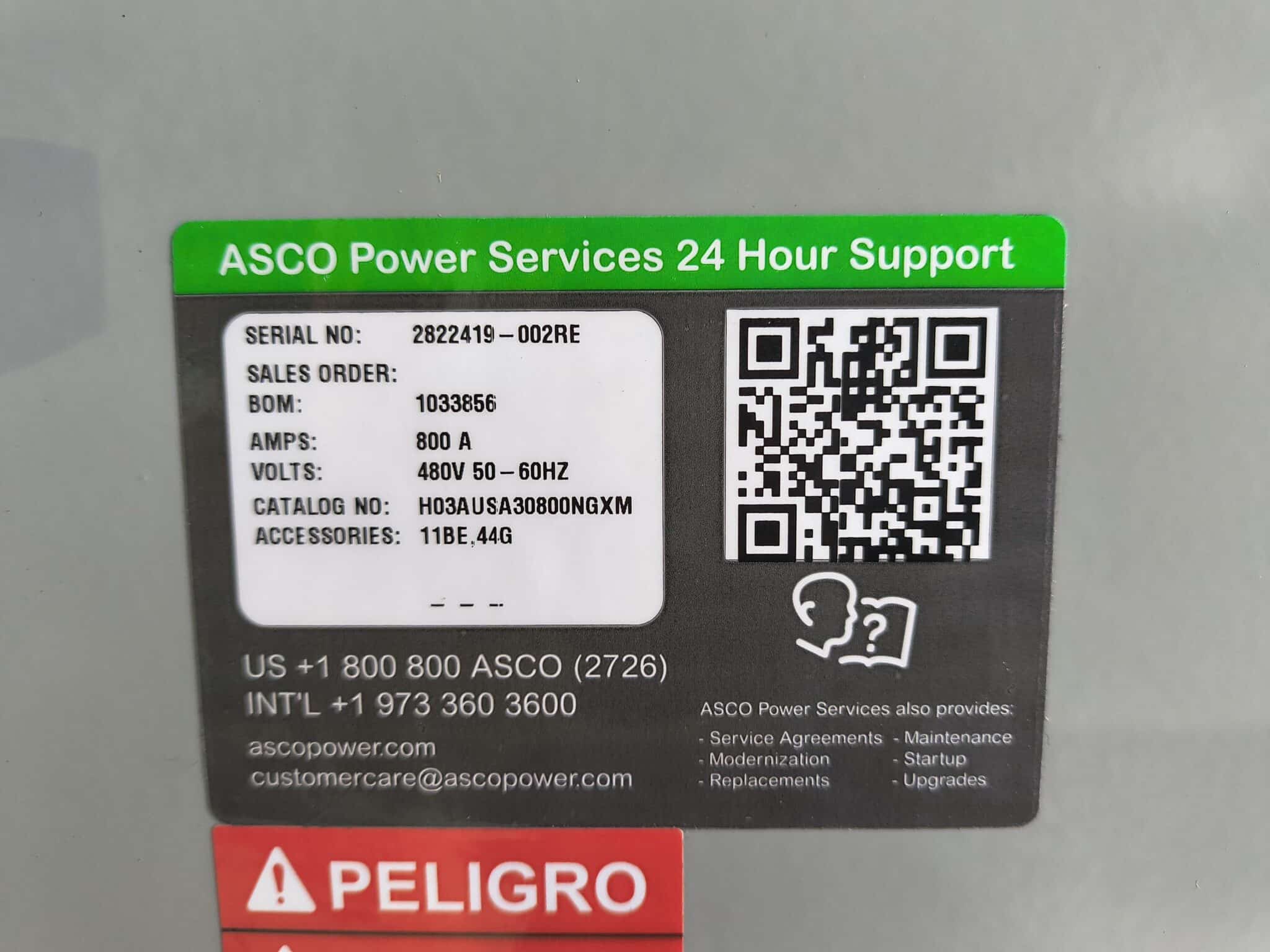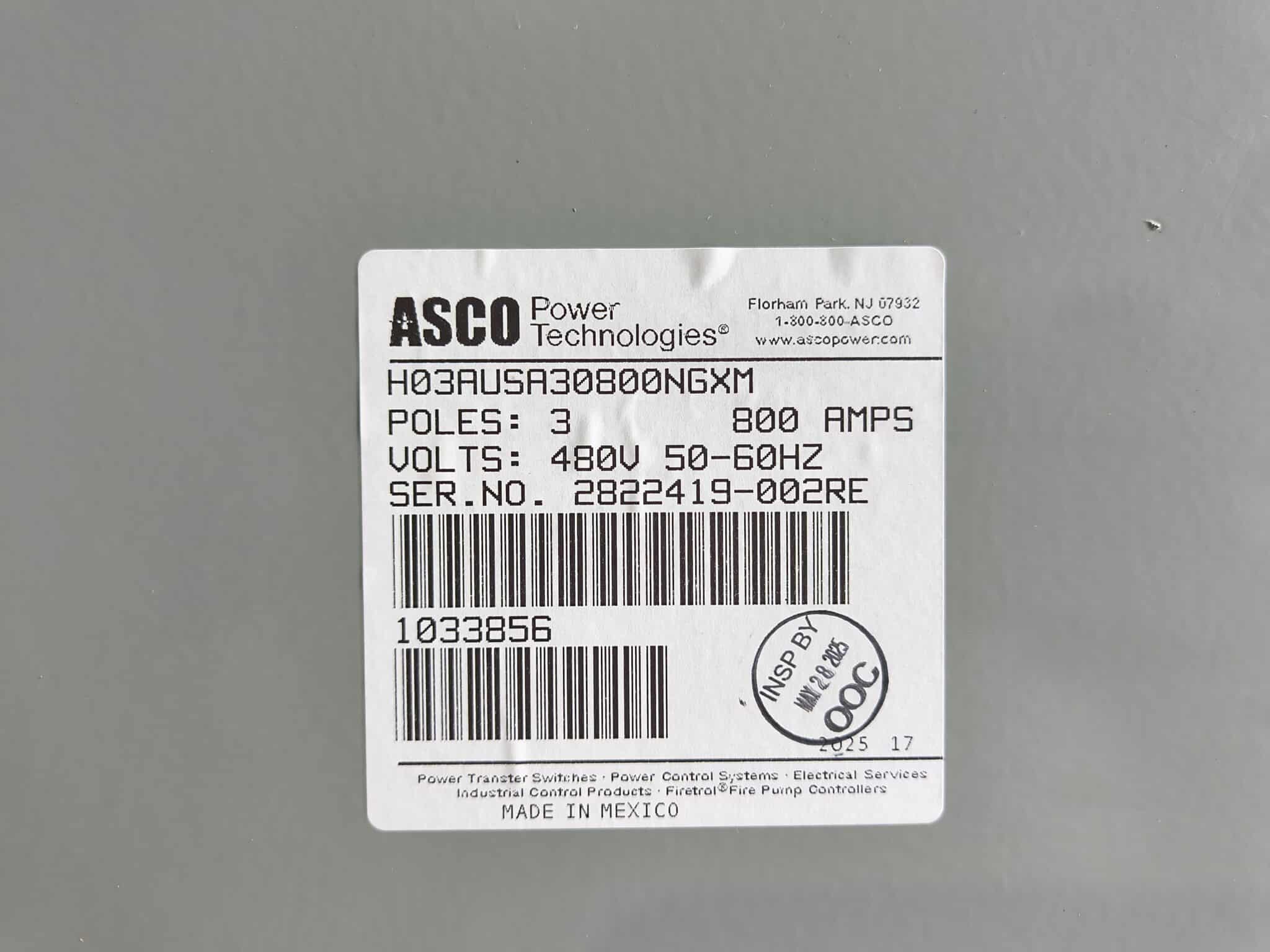 New 800 Amp ASCO H03AUSA30800NGXM Service Entrance Rated Automatic Transfer Switch