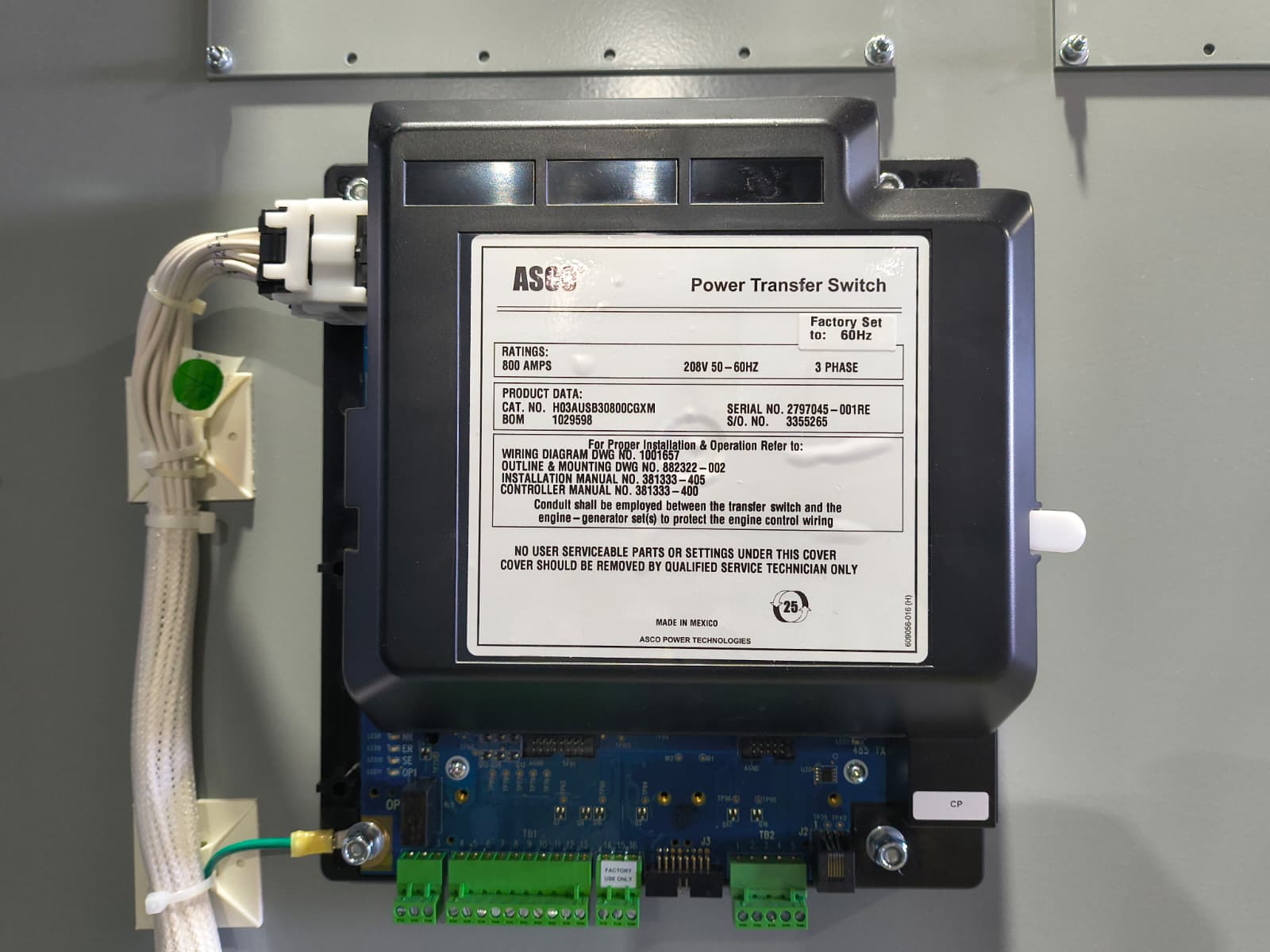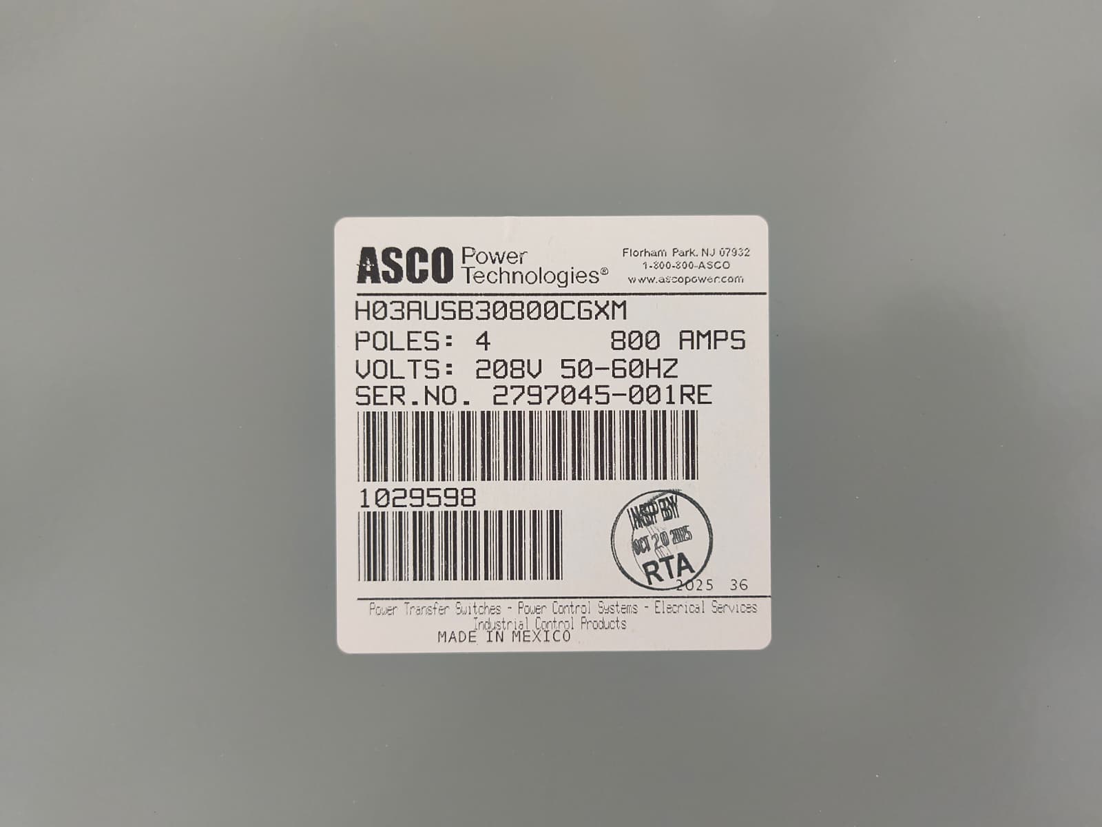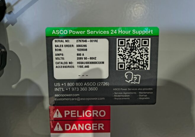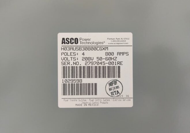 New 800 Amp ASCO H03AUSB30800CGXM Service Entrance Rated Automatic Transfer Switch