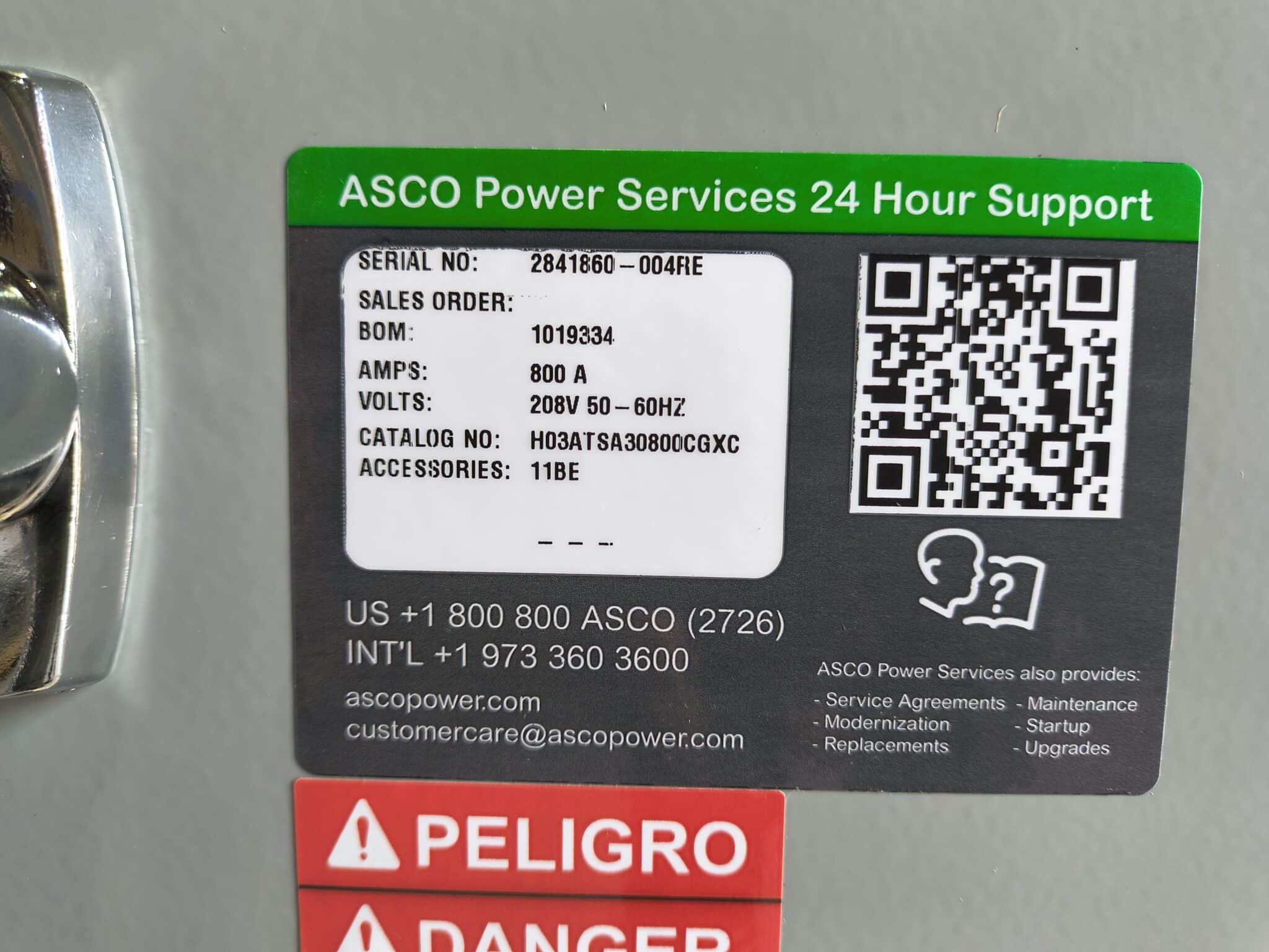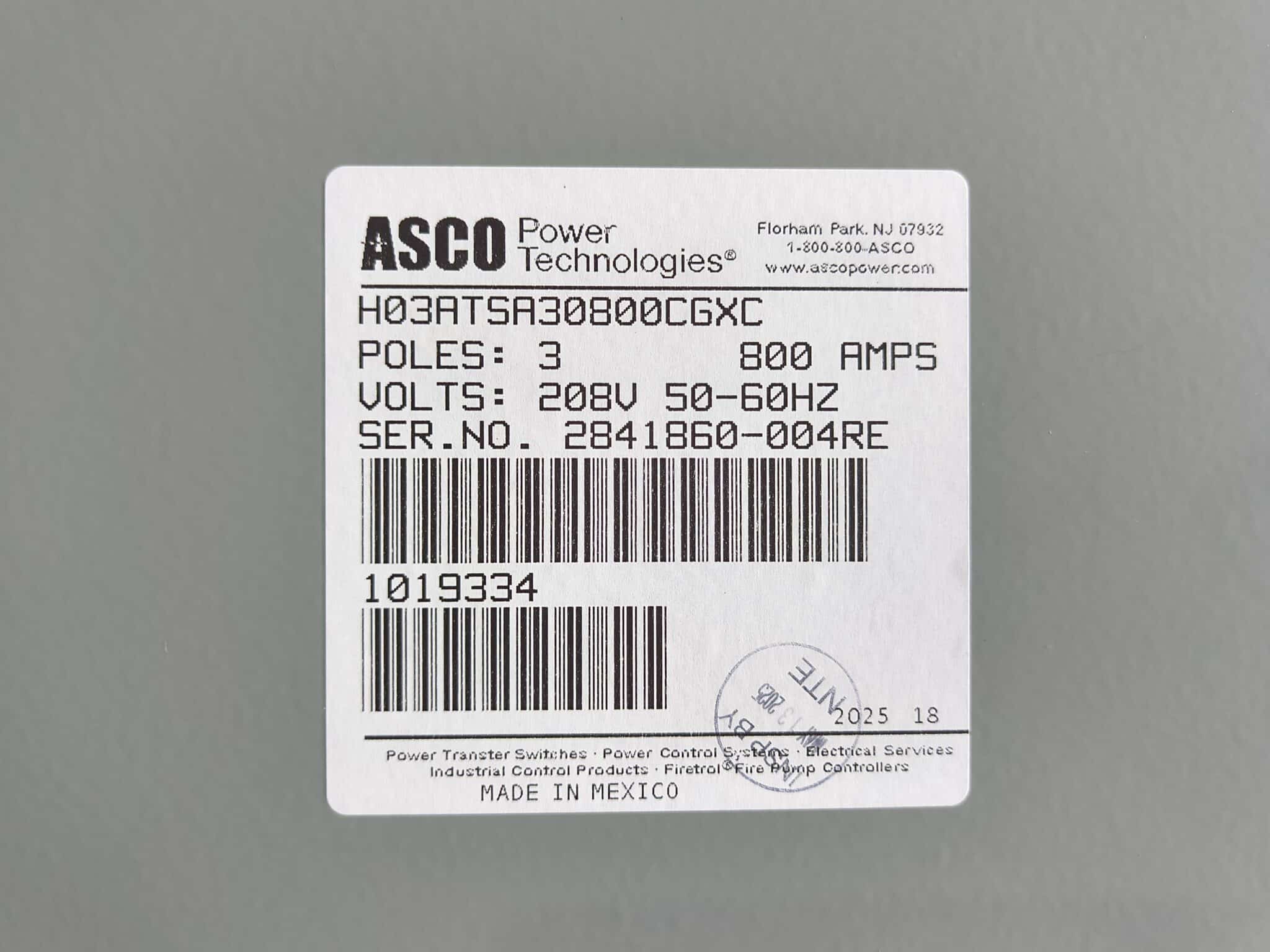 New 800 Amp ASCO Series 300 H03ATSA30800CGXC Automatic Transfer Switch
