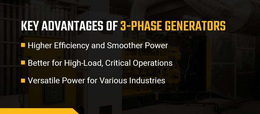 While 3-phase generators often have a higher upfront cost, they pay off in long-term savings. First, they reduce energy waste and lower maintenance needs by minimizing mechanical and electrical stress. Equipment runs cooler, lasts longer and breaks down less frequently.