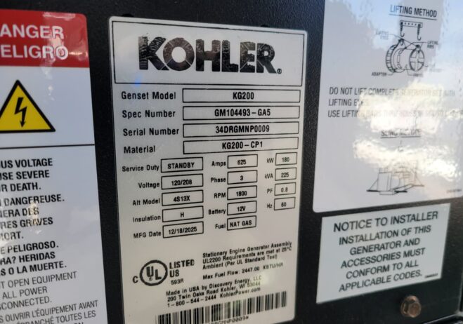 New 200 kW Kohler-Rehlko KG200 Natural Gas Generator