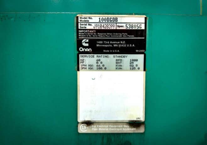 Used 100 kW Cummins 100DGDB Diesel Generator Weatherproof enclosure For more information or inquiries, please call or email us at 610-658-3242 or sales@woodstockpower.com Additionally, you can fill out our Contact Form with your inquiry and our representatives will get right back to you.