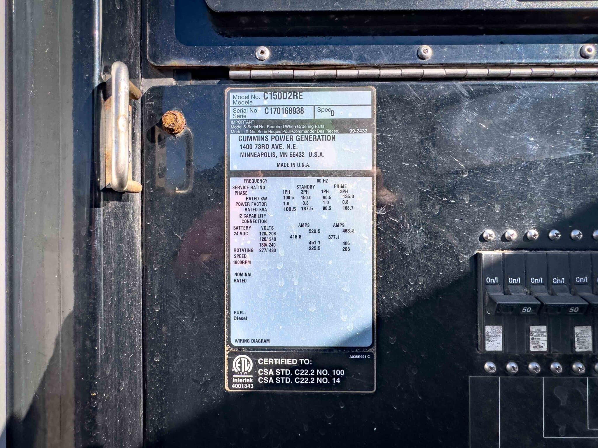 Used 150 kW Cummins C150D2RE Portable Diesel Generator EPA Tier 4 Final |