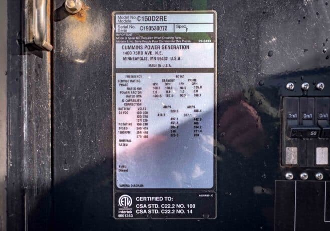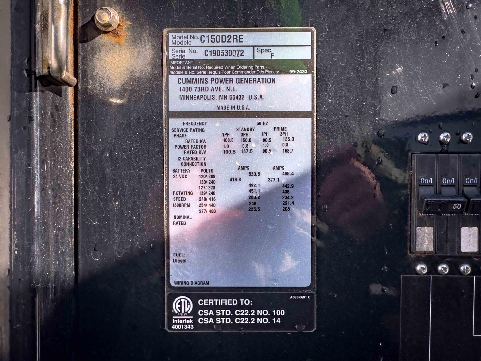 | Generator Model # | C150D2RE |