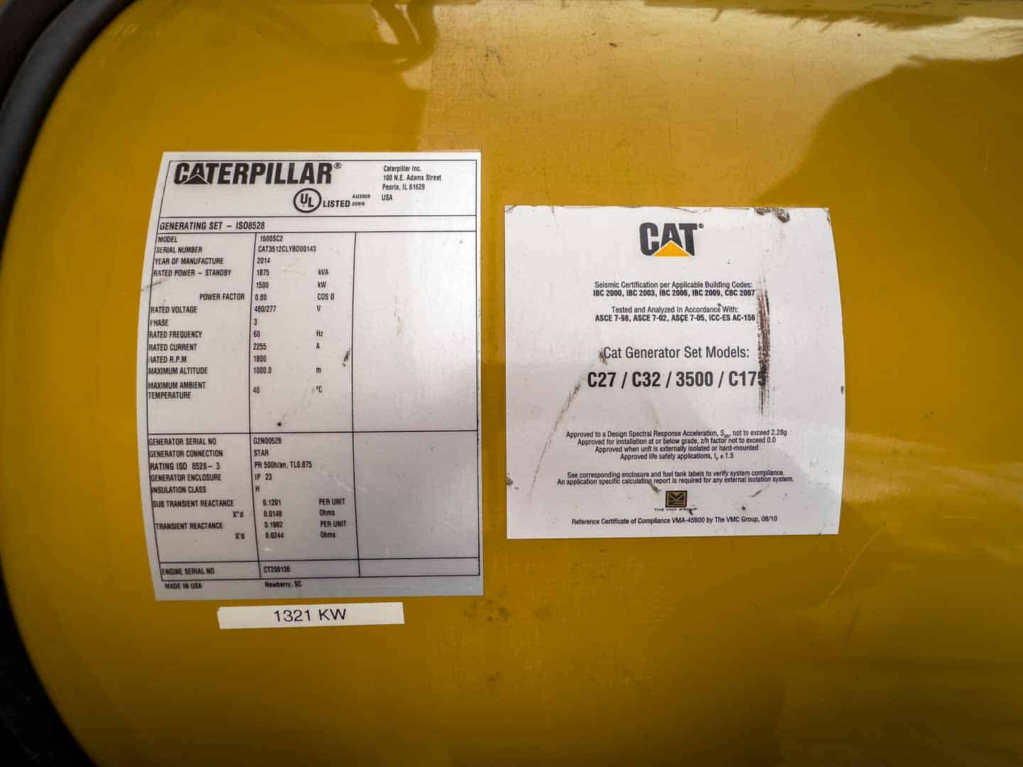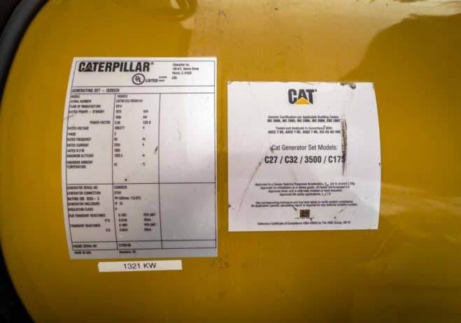 Used 1500 kW CAT 3512C Diesel Generator EPA Tier 2 Unit is housed together in an enclosure with WPCKCGM02, but can be removed and sold separately or sold together as a bundle |