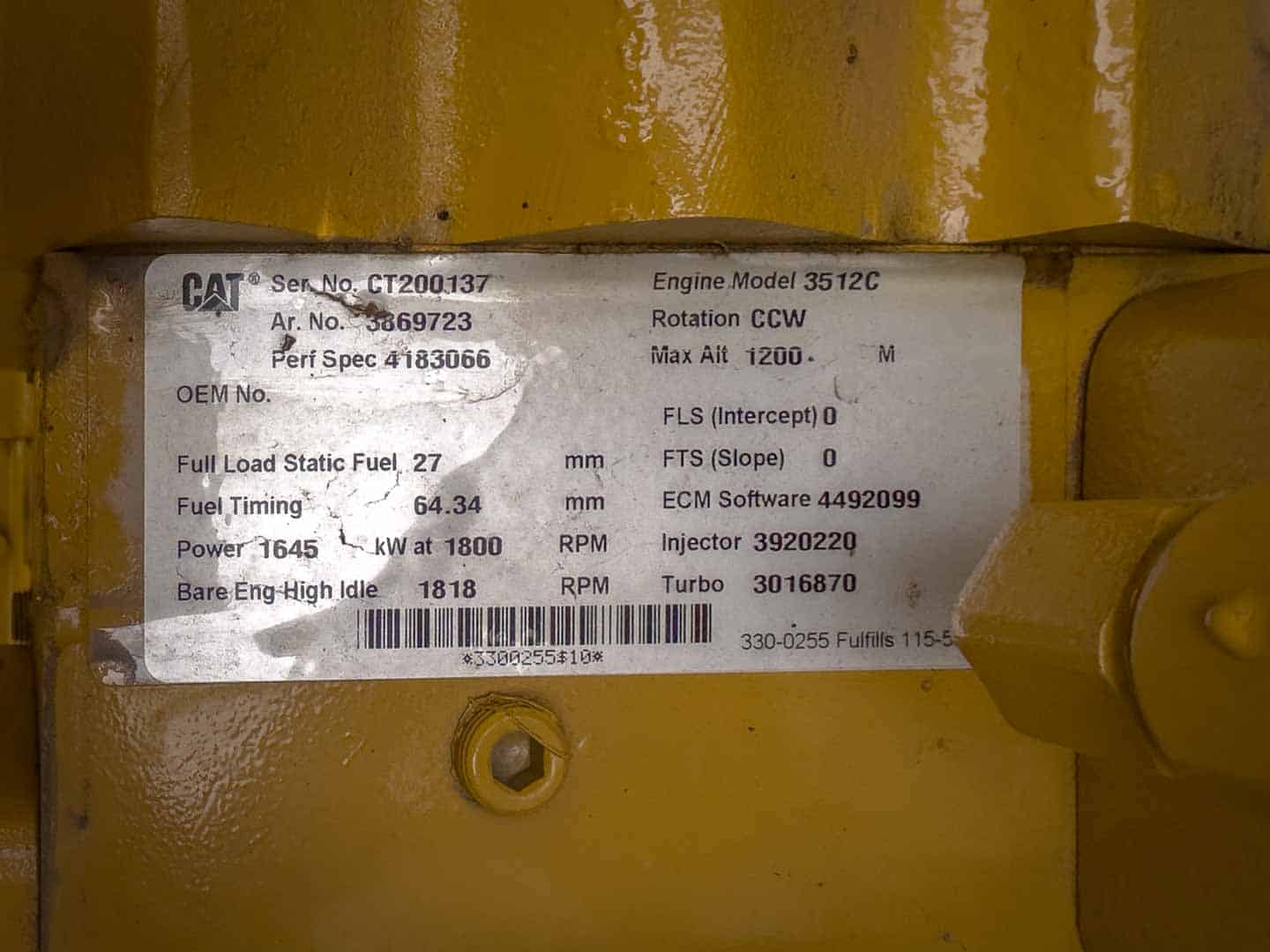 | Engine Model # | CAT 3512C |