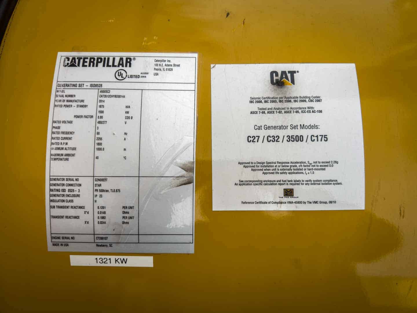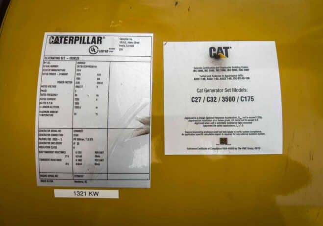 Used 1500 kW CAT 3512C Diesel Generator EPA Tier 2 Unit is housed together in an enclosure with WPCKCGM01, but can be removed and sold separately or sold together as a bundle |