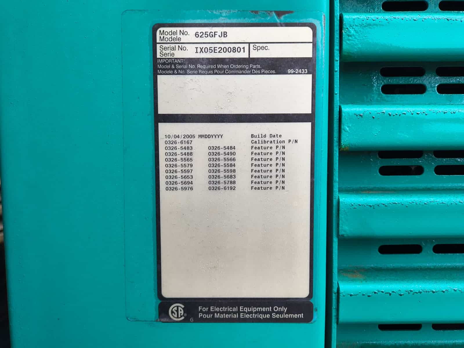 | Generator Model # | GFJB |