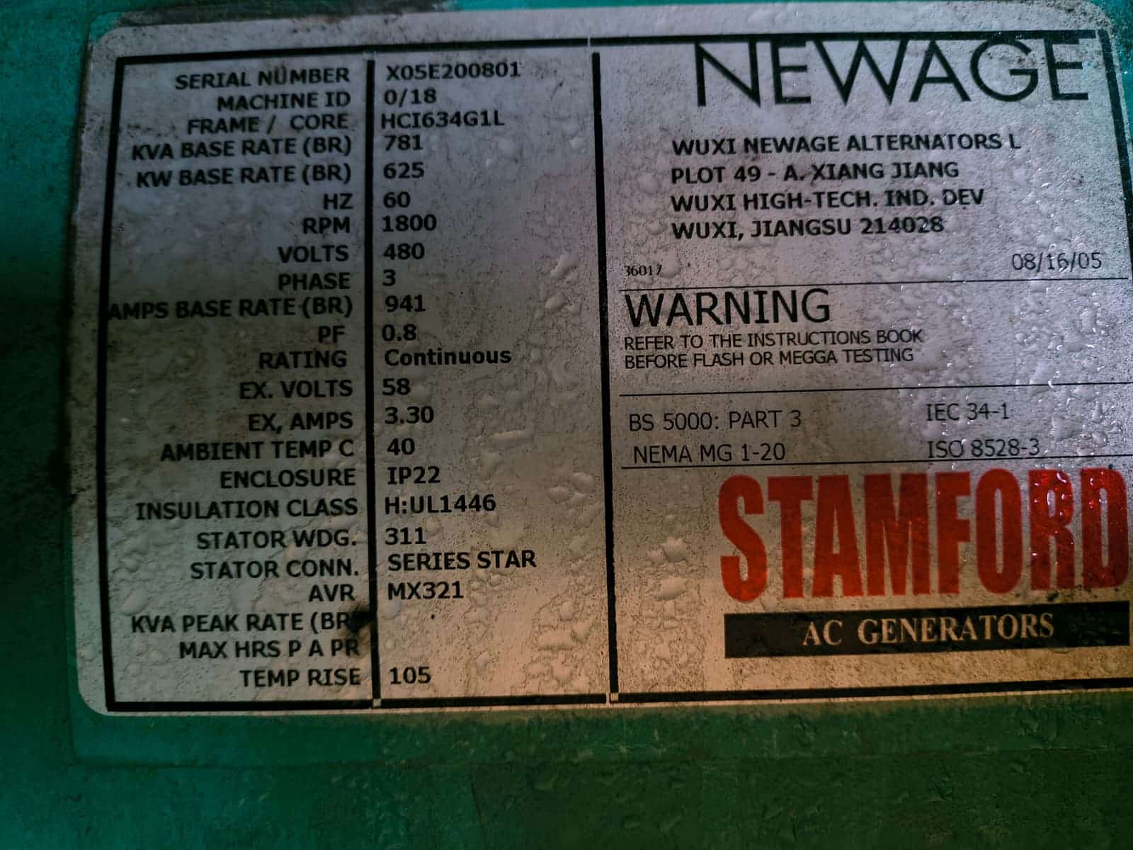 | Rating | 625 kW |